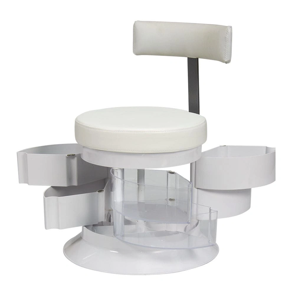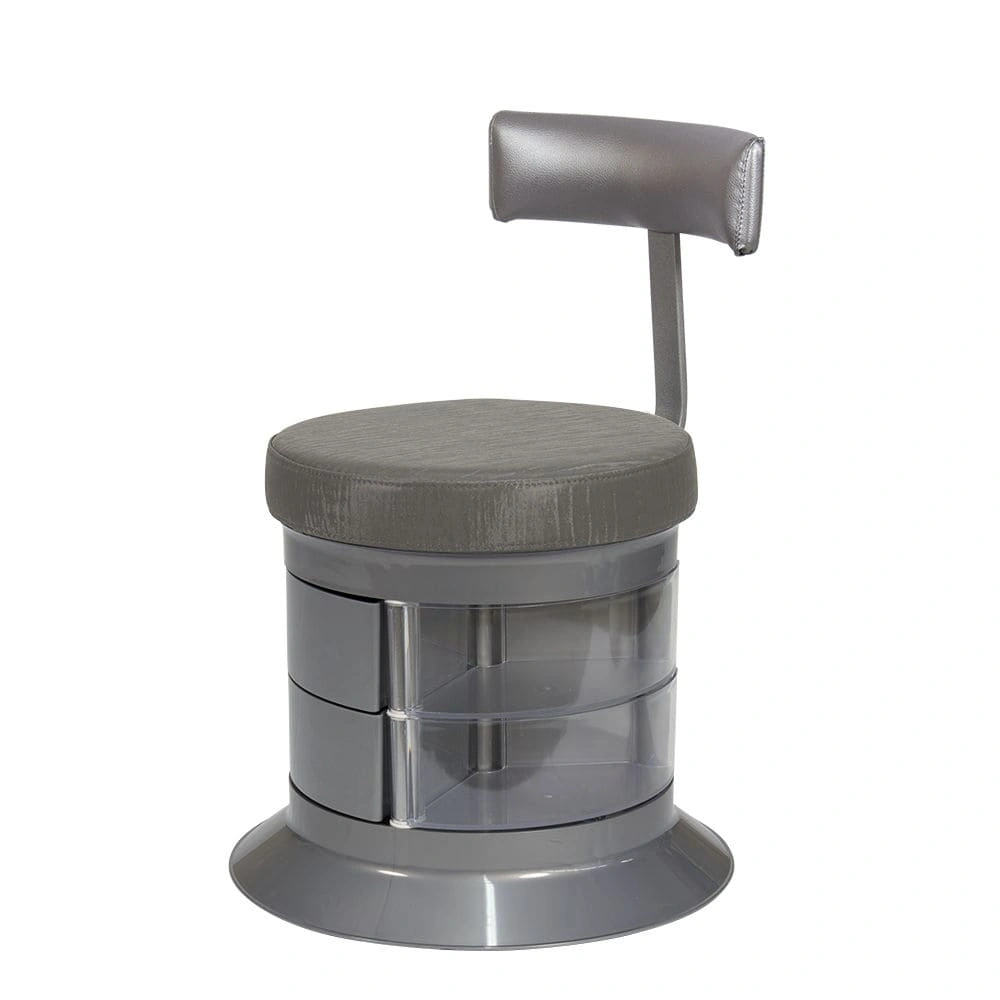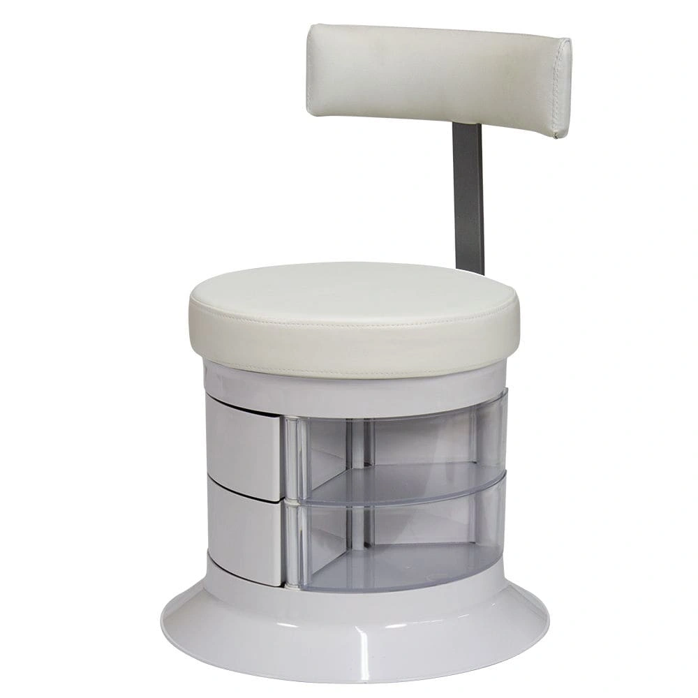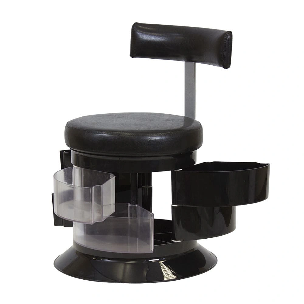 За комфорт пуфика отвечает мягкое сидение. Эргономичная спинка – дополнительное удобство для осанки мастера. В оборудовании предусмотрен практичный элемент – шесть вместительных ящичков. Специалисту не придется тратить время на поиски инструмента по салону. Бесшумно и быстро перемещаться во время рабочего процесса позволяют шесть маневренных колес.