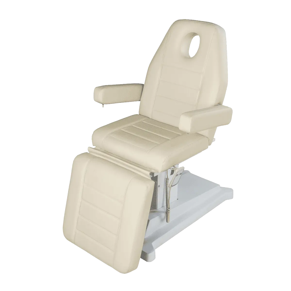 Комплектация: каркас, сиденье, спинка с вырезом для лица и съемной подушкой-подголовником, мягкий элемент под ноги, подлокотники, электрический подъемник.
