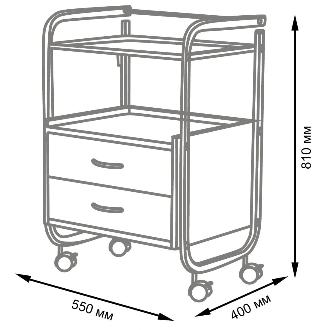 Стоит отметить, что данное косметологическое спецоборудование исполнено из прочного долговечного металла, покрытого специфическим влагоотталкивающим покрытием, за счёт чего тележка не поддаётся коррозии. За таким оборудованием легко ухаживать, ведь покрытие выдерживает влагу и дезинфицирующие средства. Каркас косметологической тележки состоит из металлической полочки с бортиками и тумбочки с двумя выдвижными ящичками. На верхней полочке удобно расположить инструменты, использующиеся во время работы. А удобный бортик защитит от случайного падения инструмента. Во вместительной тумбе с двумя ящиками поместиться остальной инвентарь. Над тумбой под полочкой также можно хранить инвентарь, например высокие баночки или небольшую косметологическую технику.