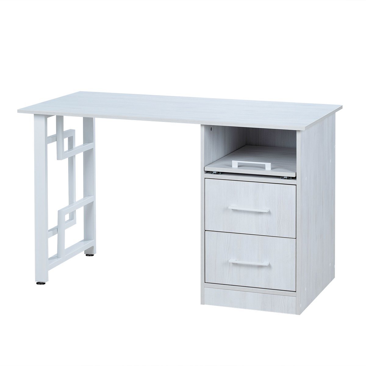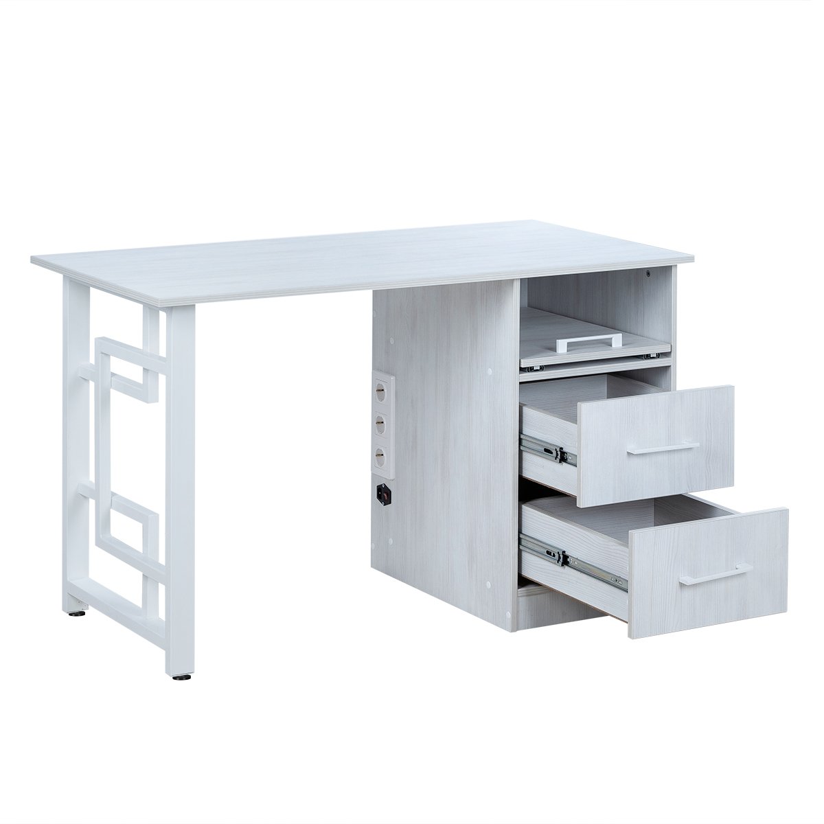 Комплектация: столешница, каркас, 1 тумба, 2 ящика, 1 полка