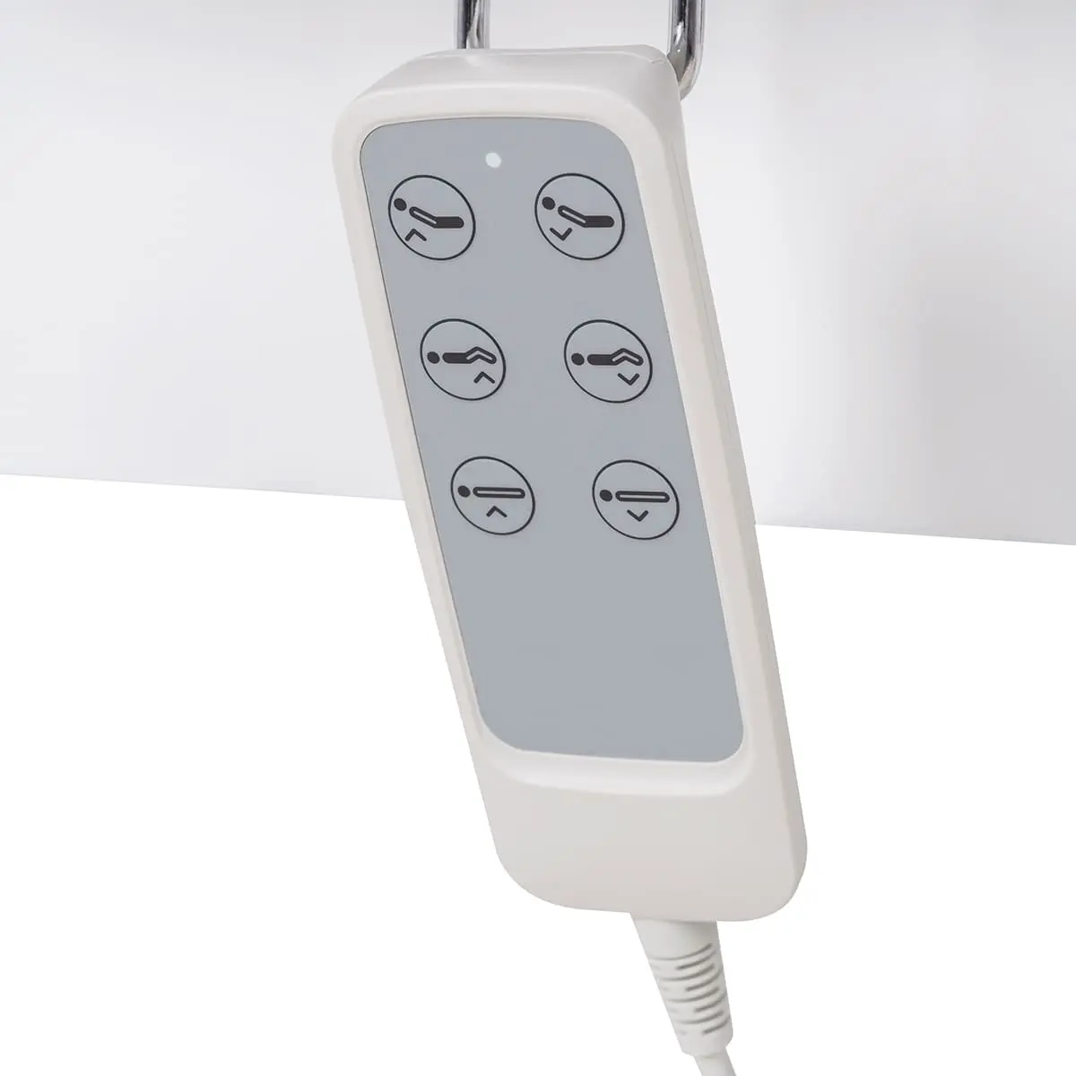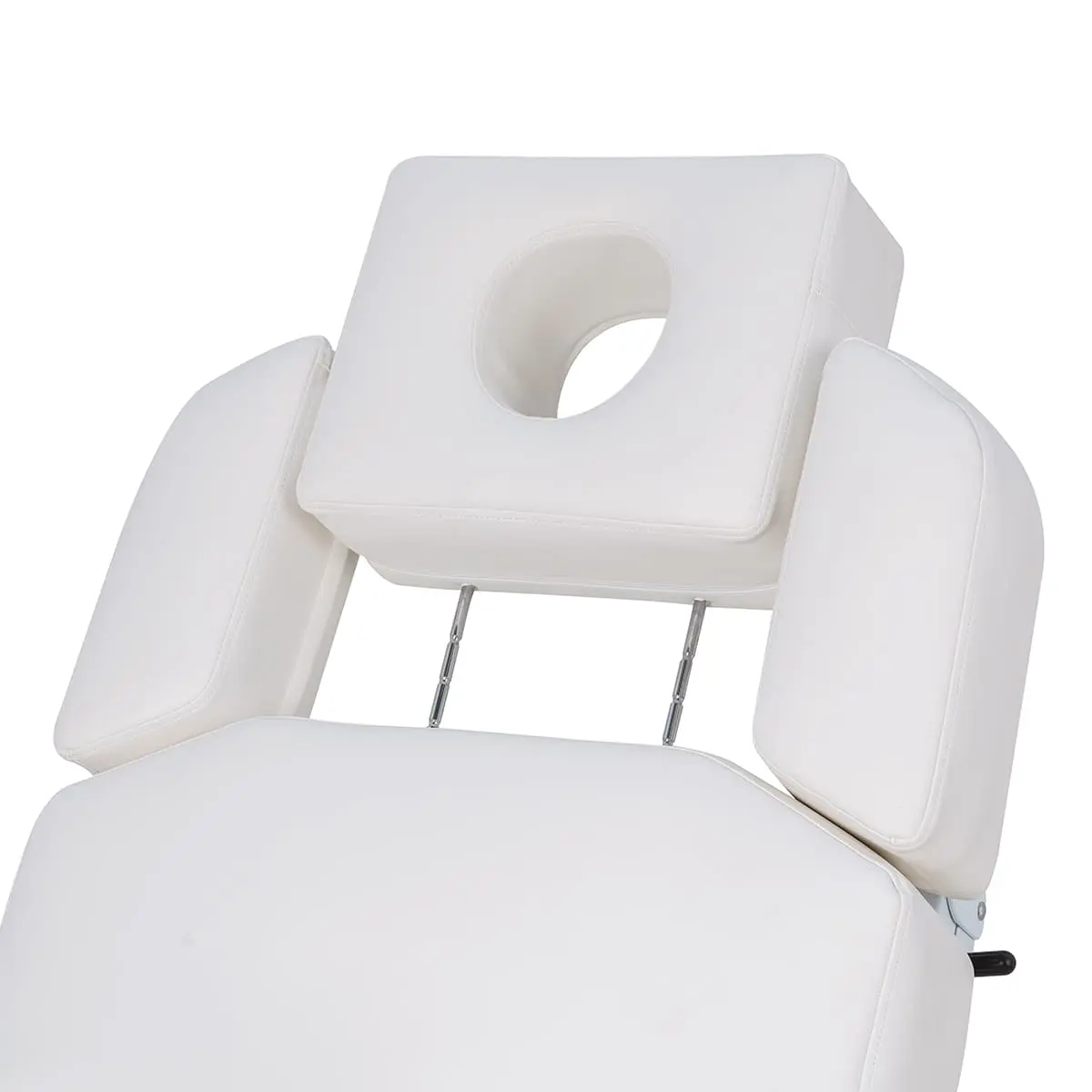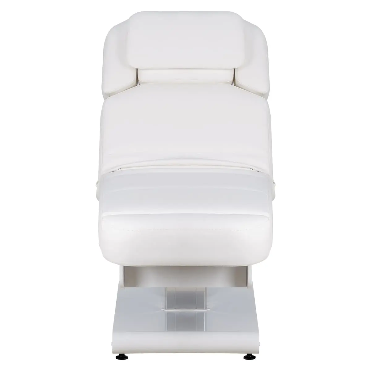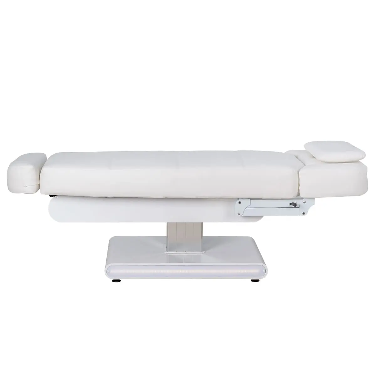 Основание кушетки на противоскользящих опорах, каркас оснащён стильной серебристой колонной, равномерно распределяющей нагрузку, что добавляет надёжности и увеличивает срок службы. Регулировка высоты и положений кресла осуществляется с помощью 3 электромоторов.