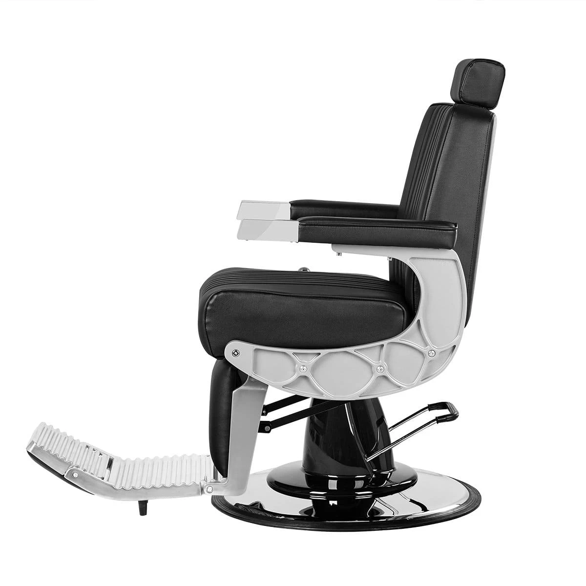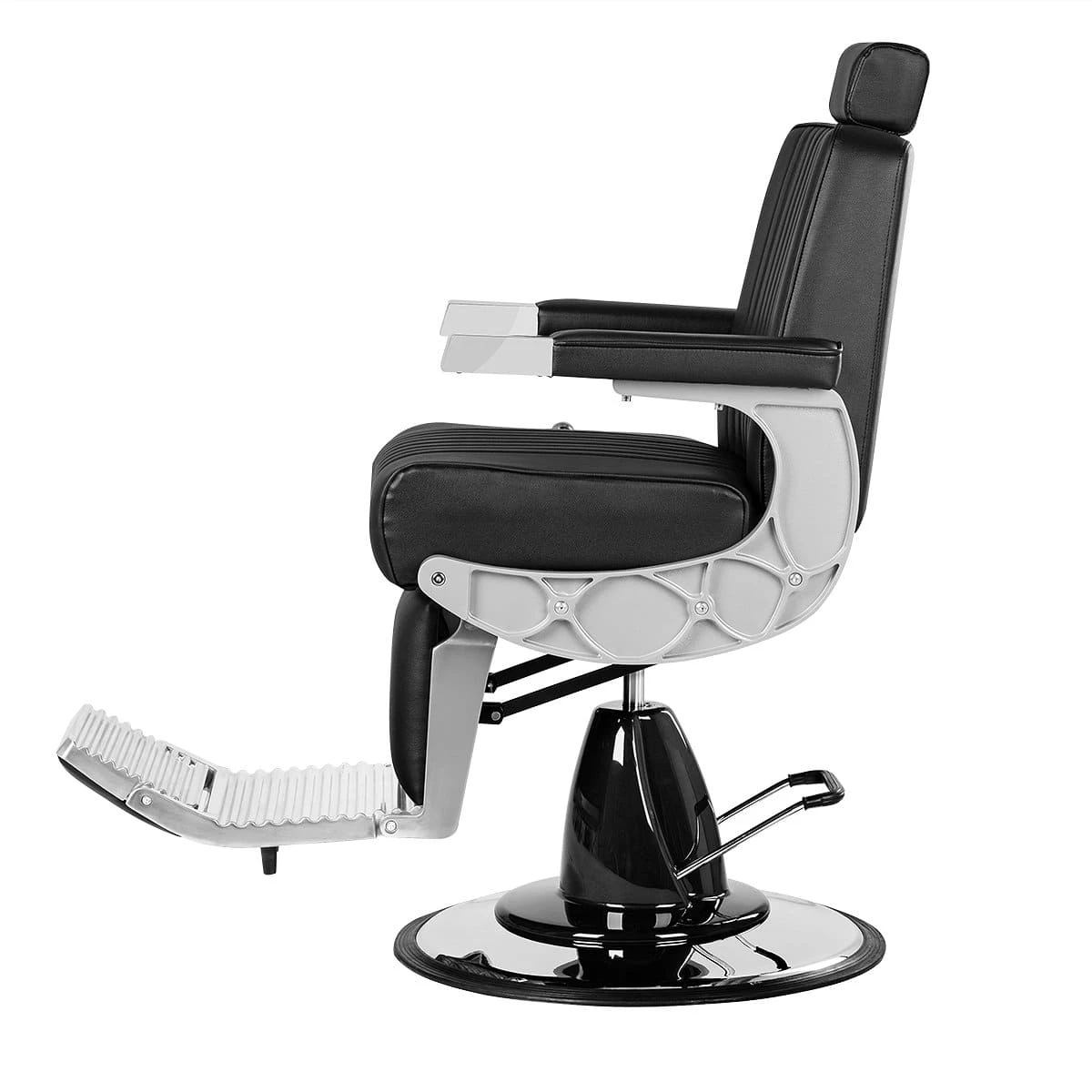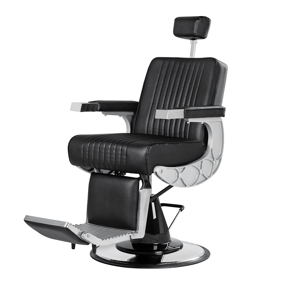 Подъем кресла осуществляется с помощью усиленной гидравлики, что позволяет выдерживать специфические нагрузки мужского салона. Регулировка угла наклона спинки и подножки происходит за счет внешнего рычага и пневматического механизма. Подголовник регулируется механически.