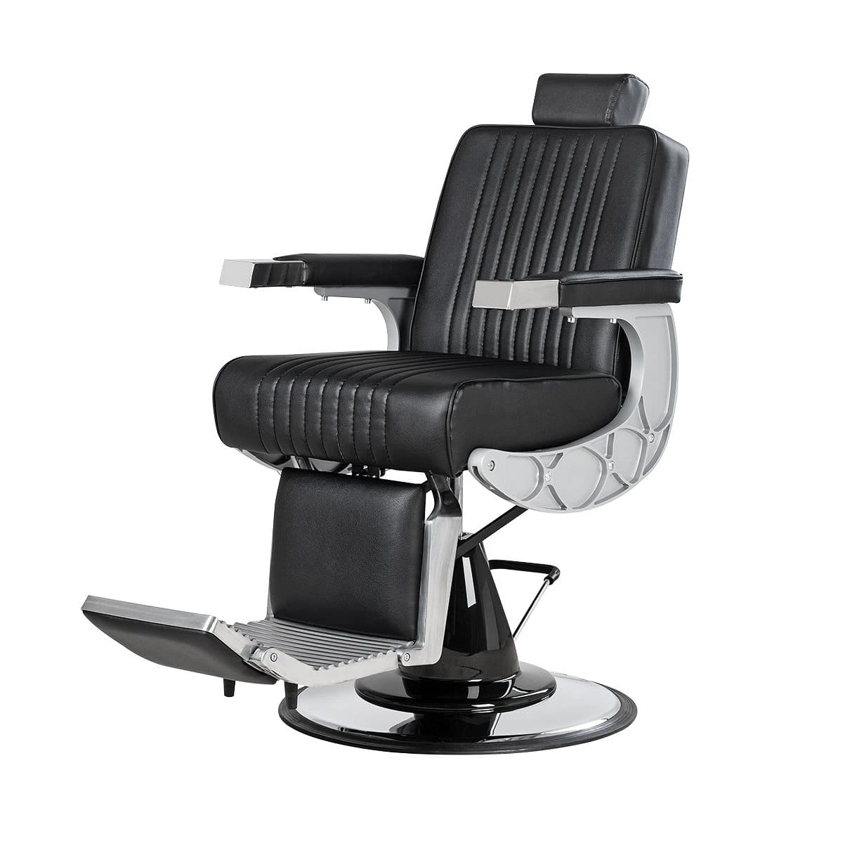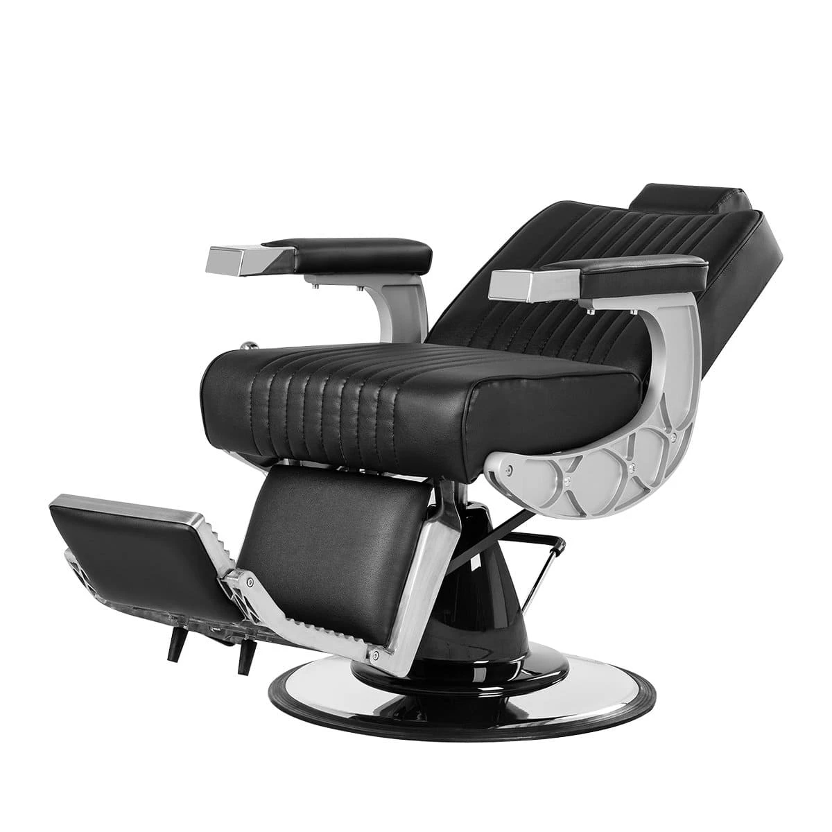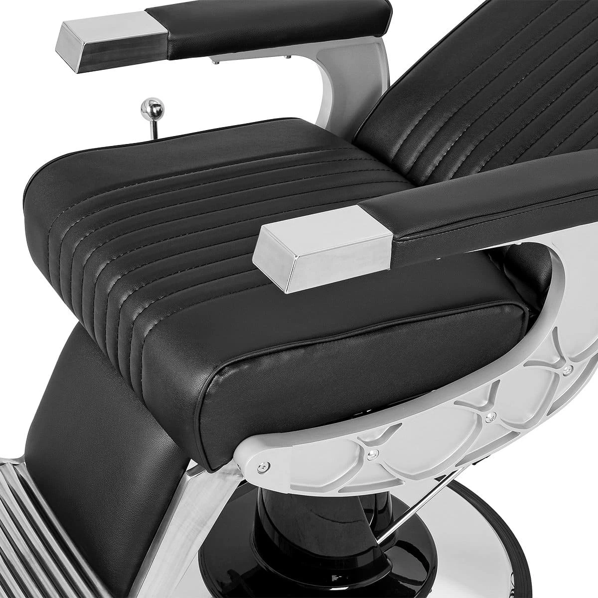 Подъем кресла осуществляется с помощью усиленной гидравлики, что позволяет выдерживать специфические нагрузки мужского салона. Регулировка угла наклона спинки и подножки происходит за счет внешнего рычага и пневматического механизма. Подголовник регулируется механически.