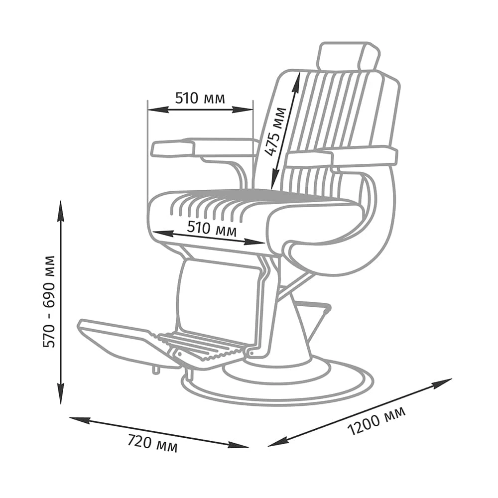 В комфортабельном кресле учтены все нюансы, которые помогут клиенту расслабиться, а мастеру комфортно работать. Благодаря удобному подголовнику клиент сможет откинуть голову во время бритья опасной бритвой. Для рук есть широкие подлокотники. Чтобы ноги клиента не находились в напряженном состоянии в кресле предусмотрена широкая подножка.