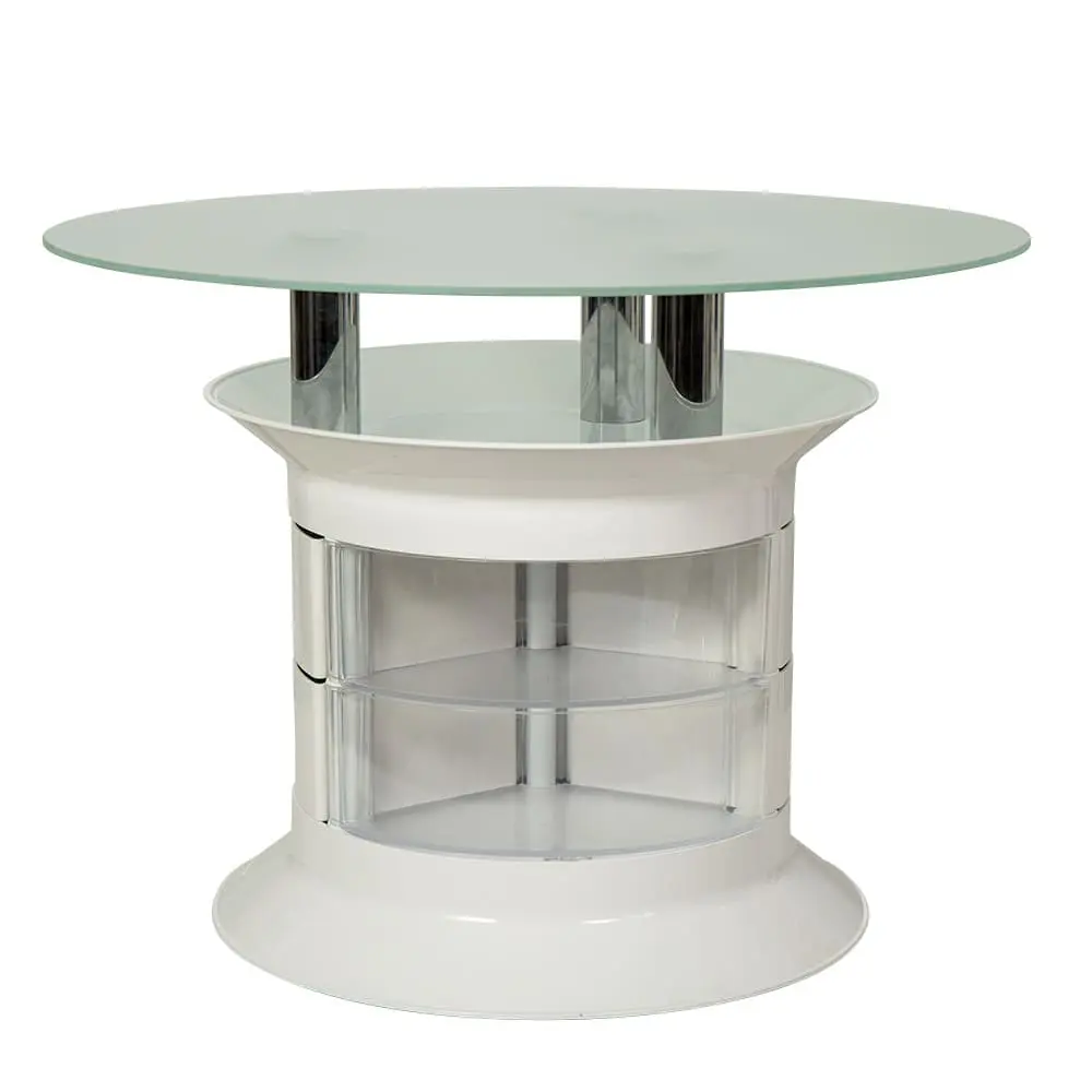 Журнальный столик GiroCo Benito Plus white – стильное и практичное оборудование для салона красоты. Необычный дизайн столика прекрасно дополнит интерьер. Под стеклянной столешницей предусмотрены вместительные ящички. Полочка над ящиками функциональна. Мебель для холла можно перемещать без особых усилий за счет маневренных колес.
