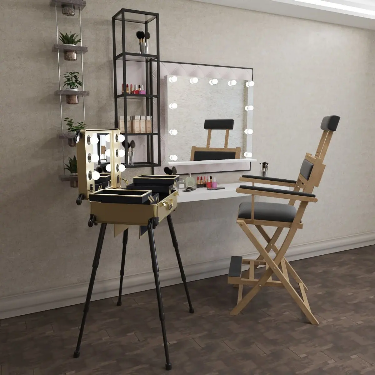 Профессиональная студия визажиста VZ-210 дополнит интерьер любого современного салона красоты, а также станет незаменимым помощником в работе на конкурсах, модных показах и других выездных мероприятиях.