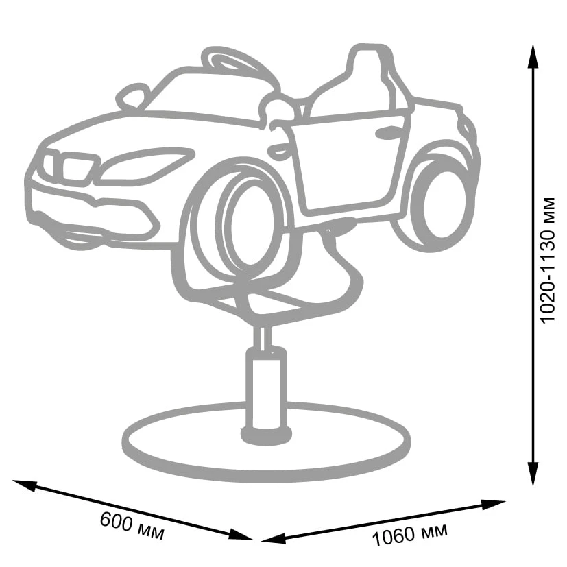 Комплектация: кресло в виде машинки на металлическом каркасе, хромированное основание, гидравлика, кабель AUX для воспроизведения музыки, кабель для зарядки аккумулятора.