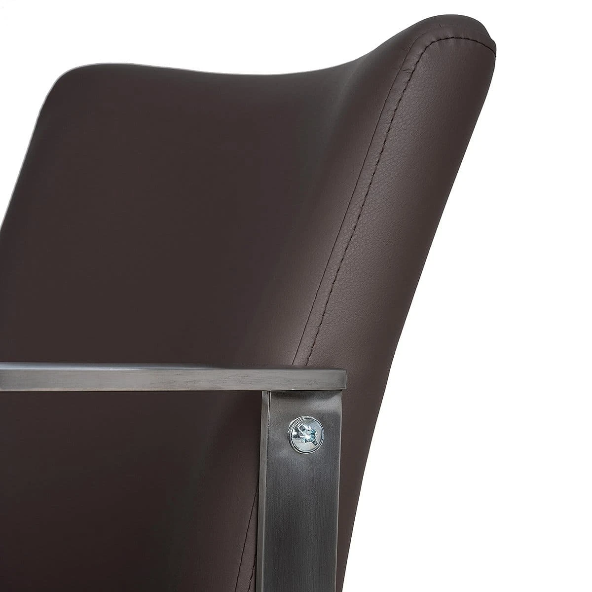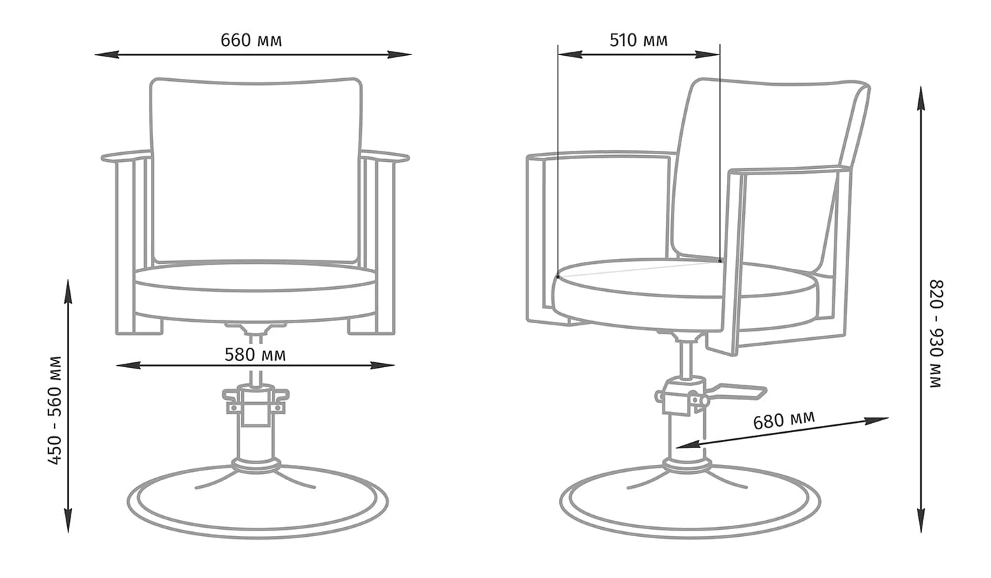 Каркас парикмахерского оборудования выполнен из прочного металла и установлен на устойчивую круглую базу из хромированной стали. Каркас из металла надежен и выгодно подчеркивает стиль кресла. Для предотвращения скольжения и царапин на полу, на основании предусмотрена качественная резиновая накладка.