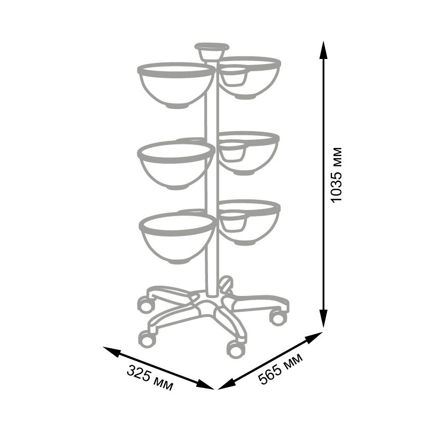 Тележка для аксессуаров Т-100 от компании МЭДИСОН. В комплектацию входит металлическая стойка на пятилучье с колесами. К стойке на разной высоте прикреплены чаши: 6 больших и 6 маленьких. Дополнительная маленькая чаша установлена сверху стойки. Такая конструкция обеспечивает максимальное удобство во время работы. Мастер может с легкостью поворачивать тележку и передвигать ее по помещению. Эту тележку Вы сможете взять с собой на различные конкурсы мастерства и другие мероприятия, ведь данная модель является разборной.