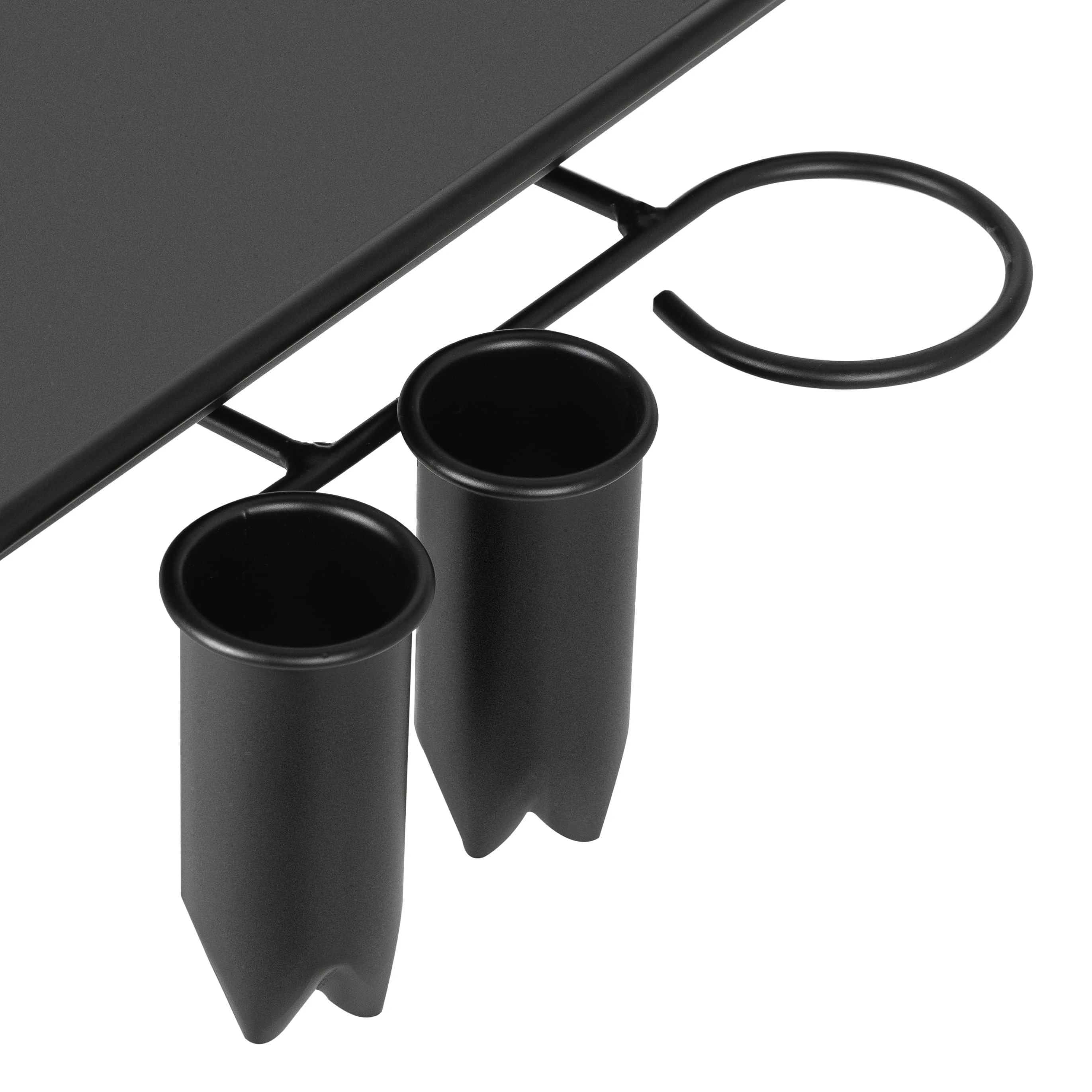 Комплектация: металлическая крышка на чёрной матовой трубе. Основание - пластиковое пятилучье на колесах.