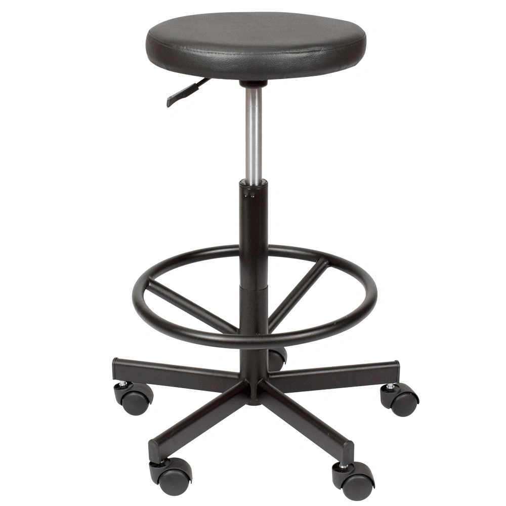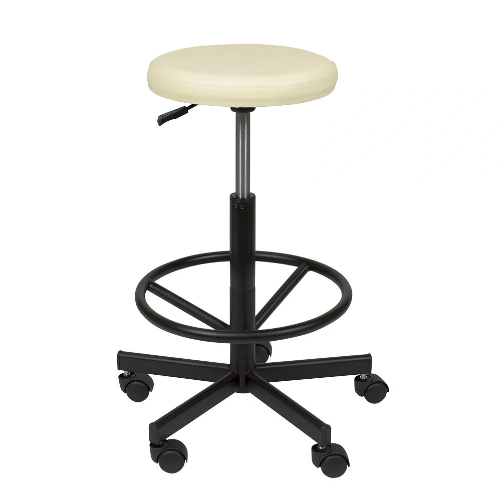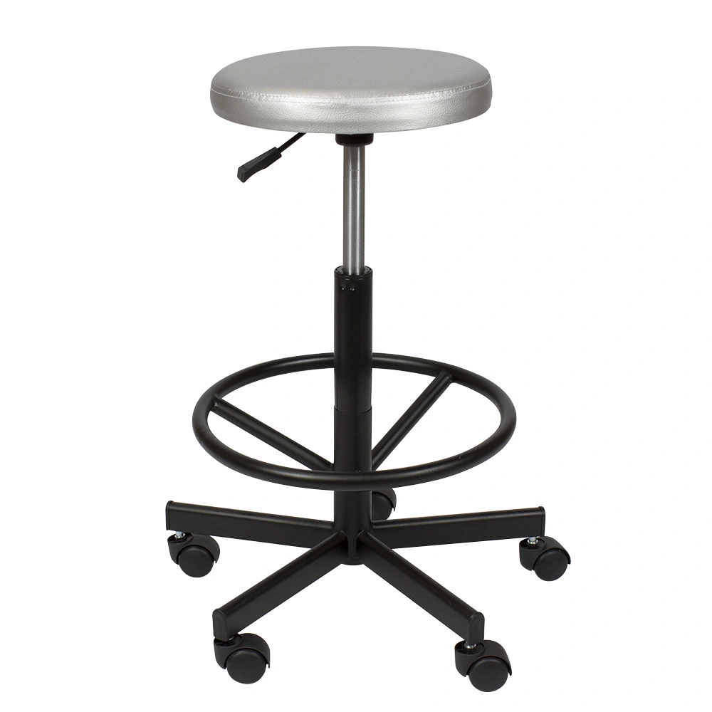 Профессиональный стул мастера Астек высокий с опорой для ног. Удобное сиденье-таблетка имеет диаметр 34 см. Для его обивки применяется качественный материал – экокожа. Она устойчива к воздействию различных косметических препаратов, легко поддается чистке и не пропускает воду. Наша компания предлагает на Ваш выбор более 40 расцветок экокожи. Наполнитель из плотного поролона обеспечивает необходимое удобство на протяжении всего рабочего времени. Данная модель кресла имеет высокую посадку, благодаря чему отлично подойдет парикмахерам, визажистам и другим специалистам в салоне красоты, а также для обустройства ресепшена. Купить стул мастера Астек высокий с опорой для ног можно недорого.