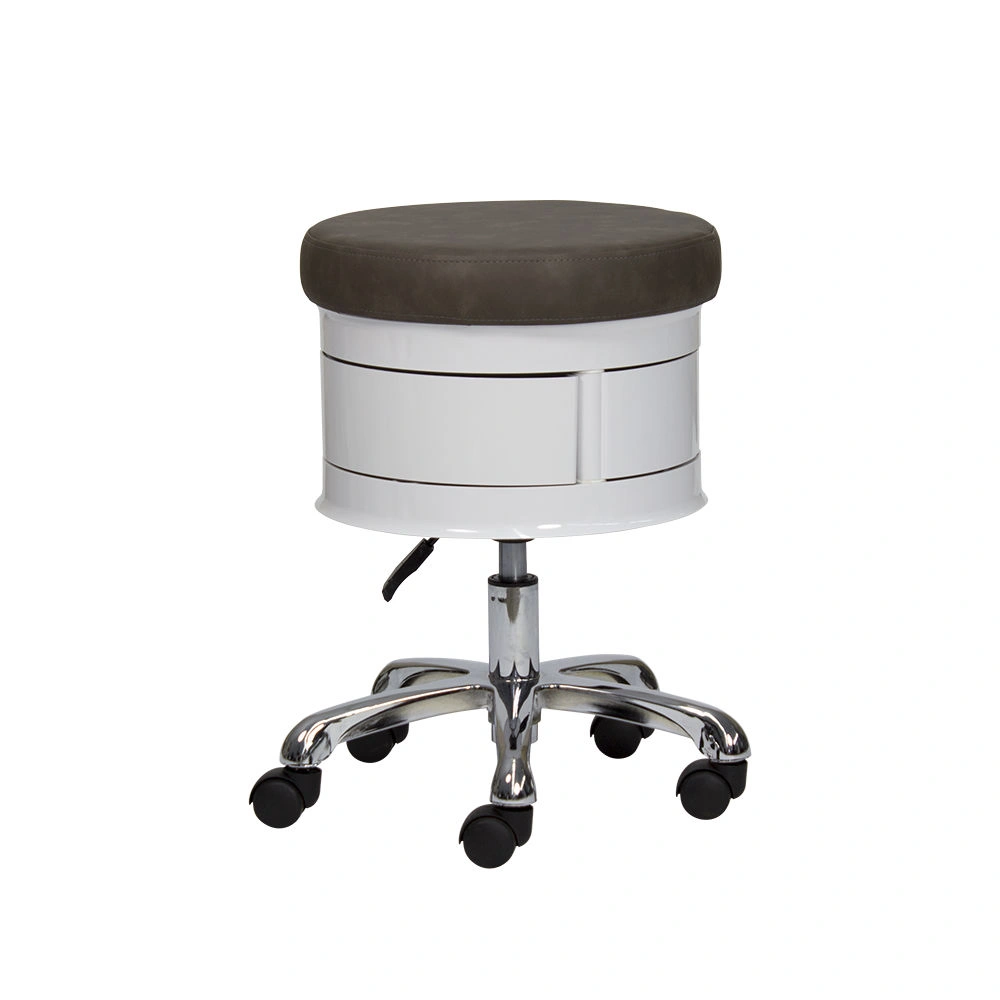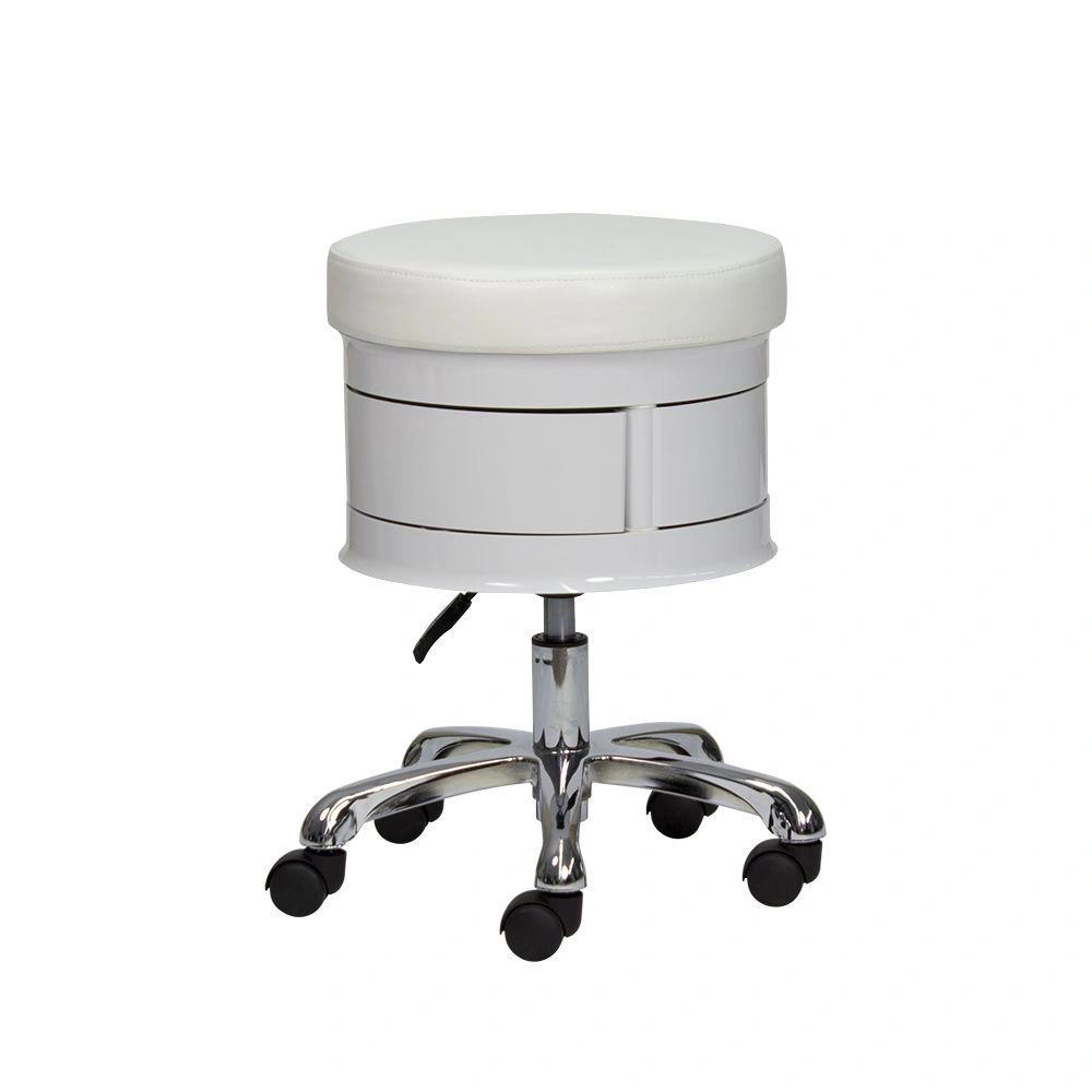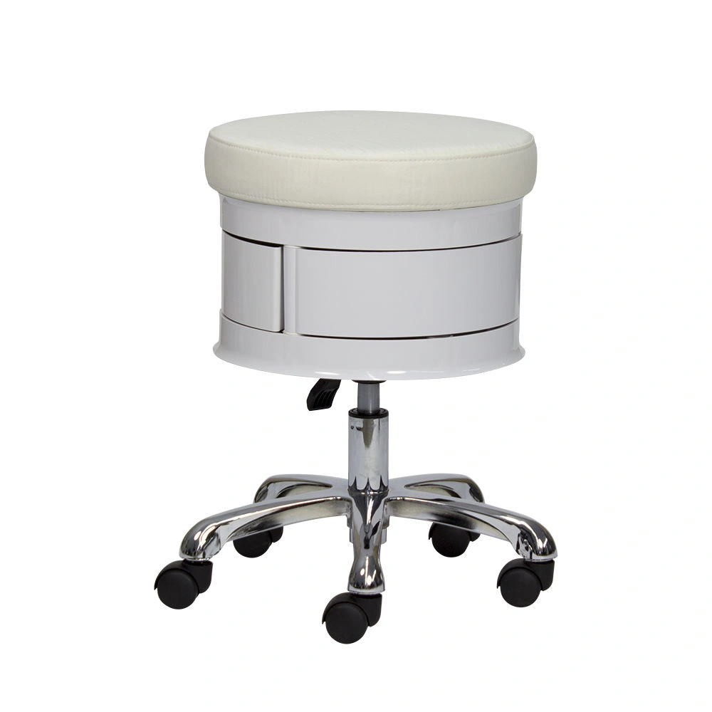 Для комфортной посадки предусмотрено мягкое сидение. В нижней части есть практичные ящики, чтобы держать необходимый инструмент во время проведения процедур. Для удобного перемещения стул укомплектован поворотными колесиками. Теперь не придется лишний раз вставать и передвигать мебель вручную. С помощью пневматического механизма регулируется высота стула, что позволит подобрать удобное положение.