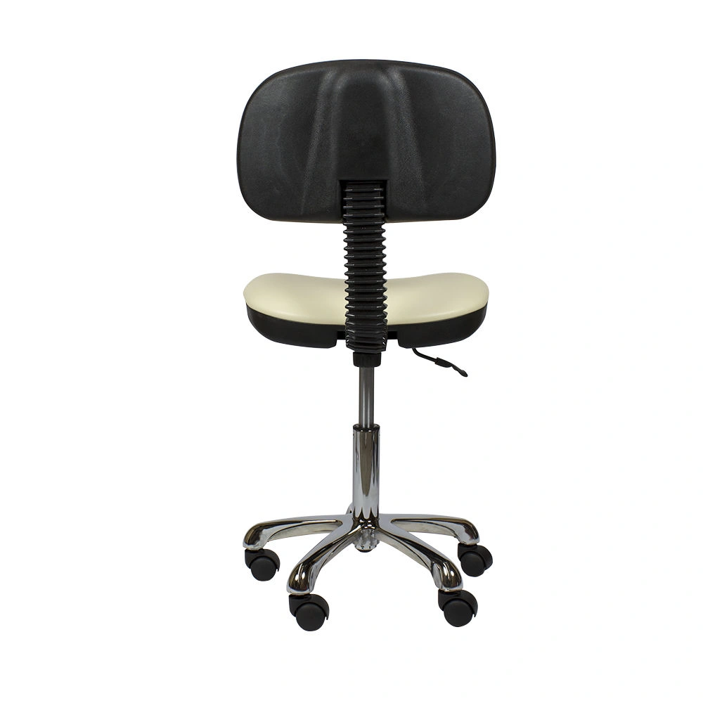 Во время работы мастеру по педикюру, как и другим специалистам beauty салонов, необходимо свободно перемещаться в рабочей зоне, поэтому стул должен быть мобильным. Для этого основание модели Сеньор комплектуется вращающимися пластиковыми колесами. Само пятилучье изготовлено из прочного металла с хромированным покрытием. Оно выдерживает рабочие нагрузки, делает стул устойчивым и выгодно подчеркивает его дизайн. Регулировка по высоте осуществляется с помощью надежного пневматического подъемника (газлифта). Купить стул мастера Сеньор с хромированным основанием можно для любого кабинета.