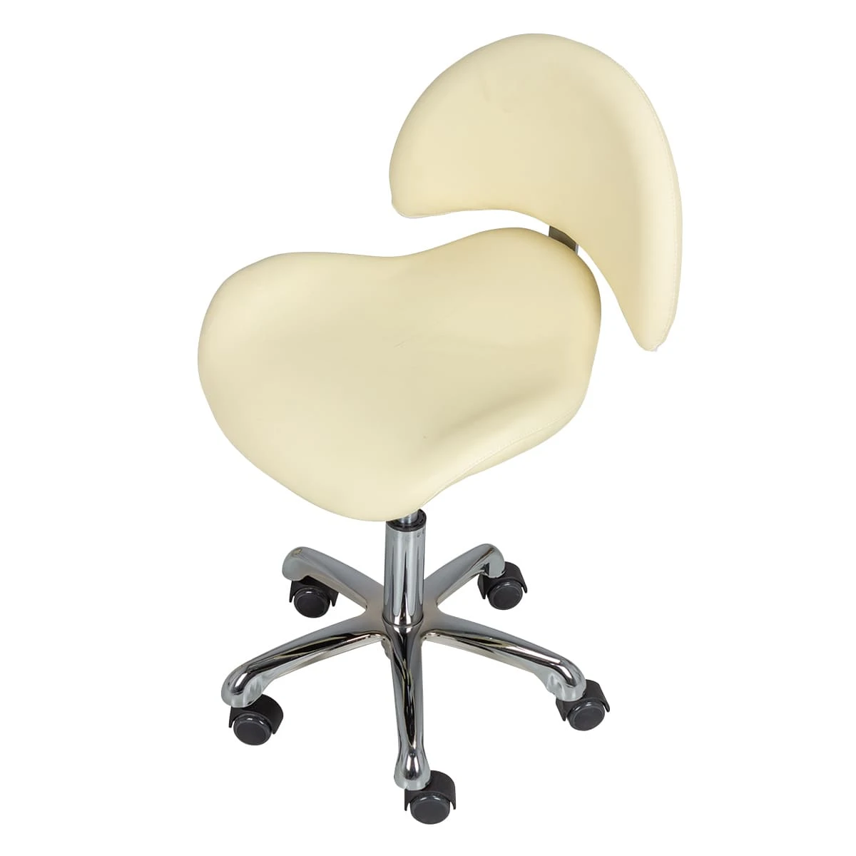 Кресло установлено на устойчивом пятилучье из хромированного металла. Для регулировки высоты оно оснащено пневматикой с удобной ручкой регулировки. Функция регулировки делает модель универсальной для работы и позволяет использовать ее для оказания широкого спектра услуг. Мобильность стула обеспечивает пять вращающихся колес. Они изготовлены из прочного черного пластика, благодаря чему стул легко передвигается и не царапает напольное покрытие. Стул мастера со спинкой МД-2136 магазин МЭДИСОН предлагает по выгодной и доступной цене.