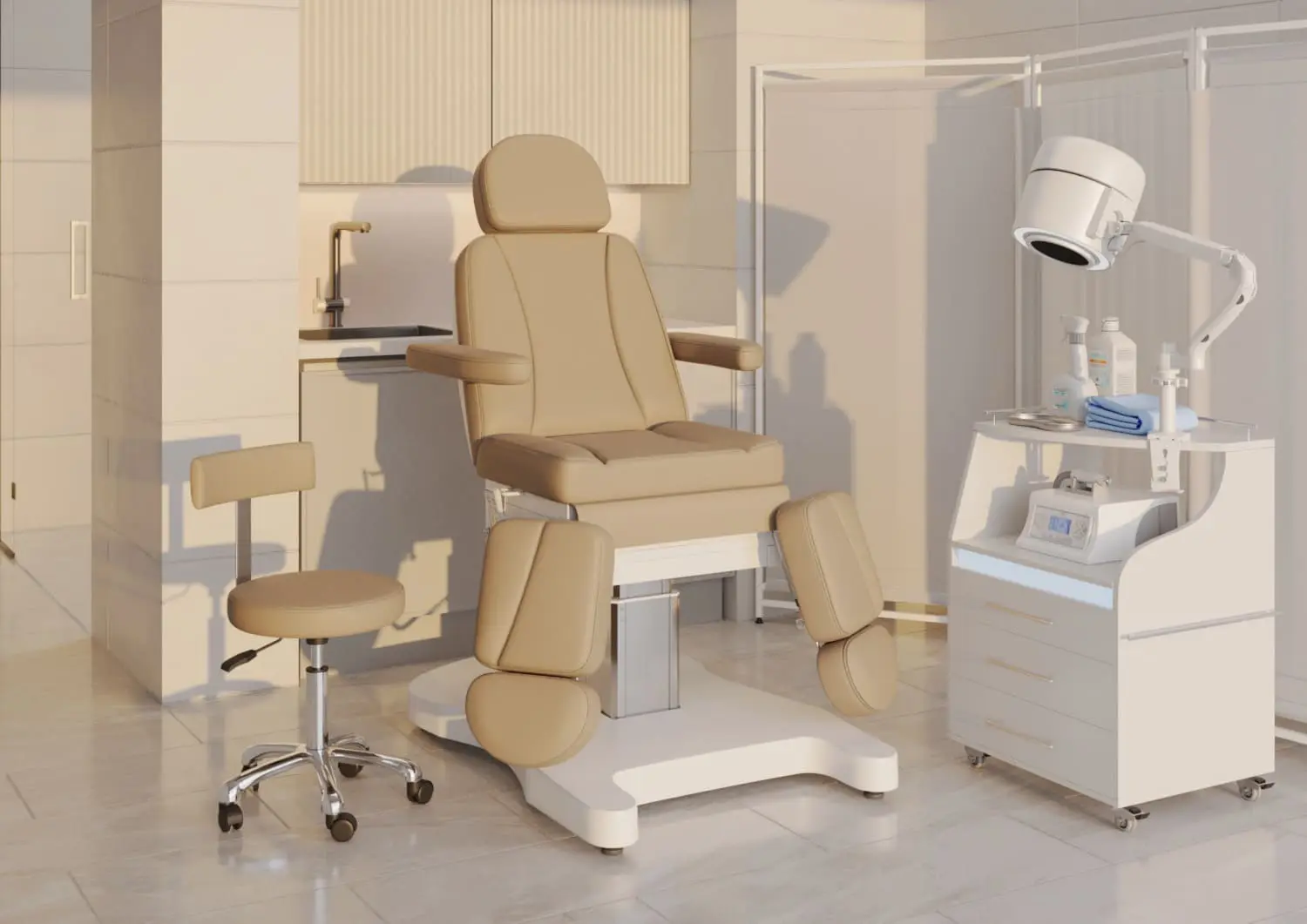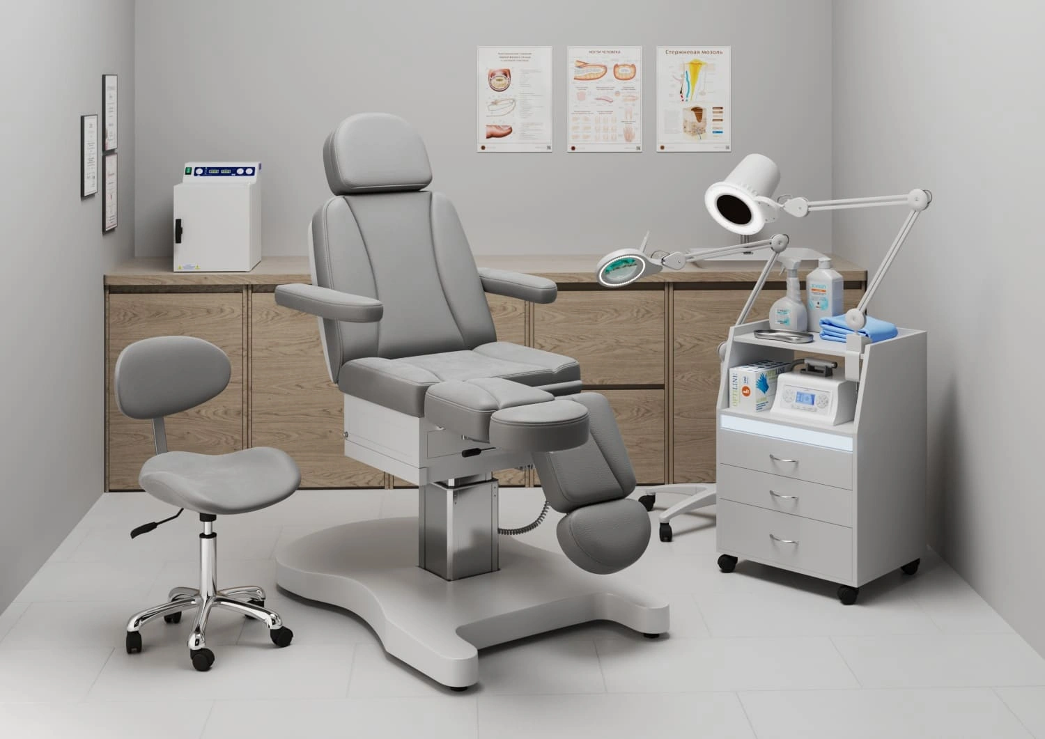 И главная изюминка — раздвижные ножные опоры. Это не просто «удобно». Это совсем другой уровень работы: регулировка не только по высоте, но и по углу разведения — стопе комфортно, нет напряжения; мастер получает доступ к каждому участку — педикюр получается точнее и быстрее; процедура проходит быстрее, мягче и аккуратнее!