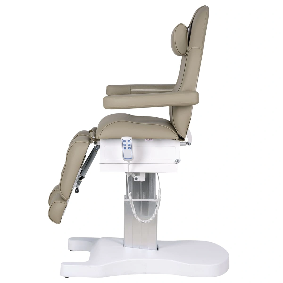 Педикюрное кресло Шарм-04 на колонне, 3 мотора гармонично сочетает в себе инновационные технологии, современный дизайн и хороший функционал. В его комплектацию входит три мотора электрического привода, управление которыми осуществляется при помощи удобного, компактного пульта. Все механические детали аккуратно спрятаны в стильной серебристой колонне. Благодаря продуманной конструкции металлического каркаса и широкому основанию на подпятниках кресло сохраняет свою устойчивость под воздействием рабочих нагрузок в любом положении, предусмотренном регулировками. Пластиковая накладка на основании интересной формы подчеркивает дизайнерское решение. Купить педикюрное кресло Шарм-04 на колонне, 3 мотора можно для установки в любом подходящем помещении.