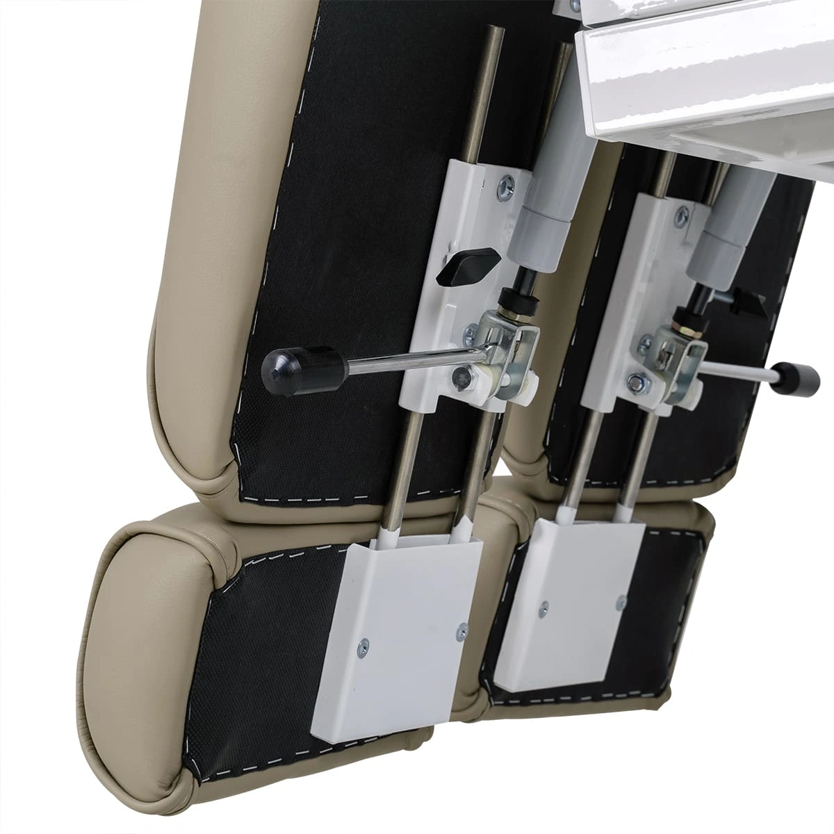 Мягкие элементы: сиденье, спинка с подголовником, раздельные ножки с выдвигающимися подпятниками, мягкие подлокотники