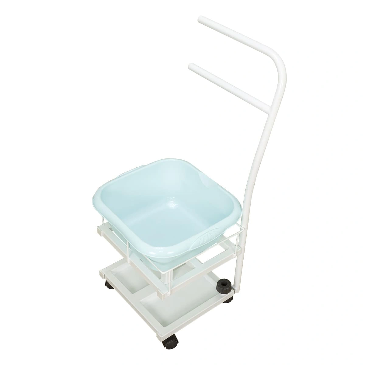 Благодаря двухъярусной конструкции можно установить не только ванную, но также необходимые инструменты и приспособления. Ванночка снимается для чистки и дезинфекции. Удобную ручку можно использовать как для перемещения педикюрного оборудования, так и для развешивания полотенец. Встроенные колеса обеспечивают маневренность и бесшумность передвижения по любому типу напольного покрытия.