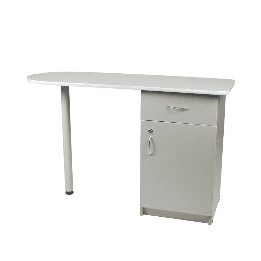 Комплектация: столешница, тумба с одним выдвижным ящиком и отделением, закрывающимся на замок, ножка на подпятнике.