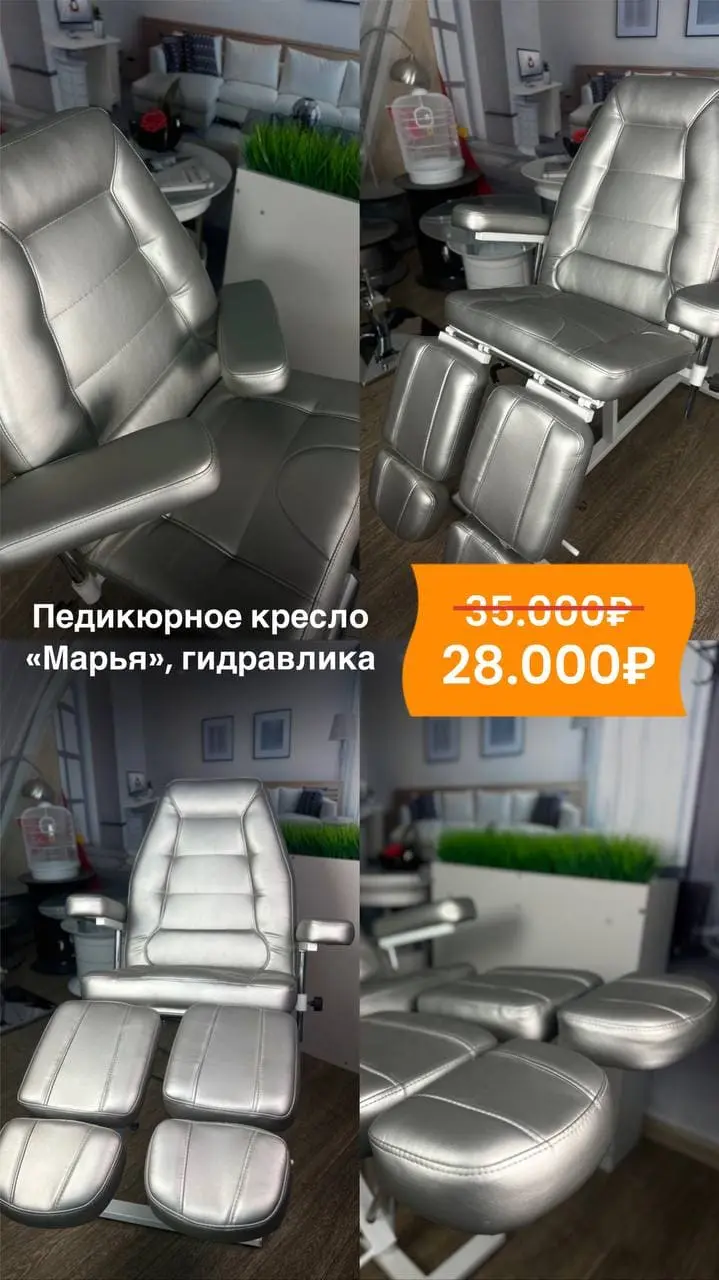Серебристое педикюрное кресло «Марья» на гидравлике с регулируемыми подлокотниками