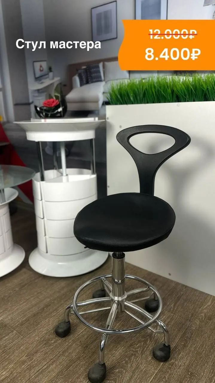 Чёрный стул мастера с опорой для ног