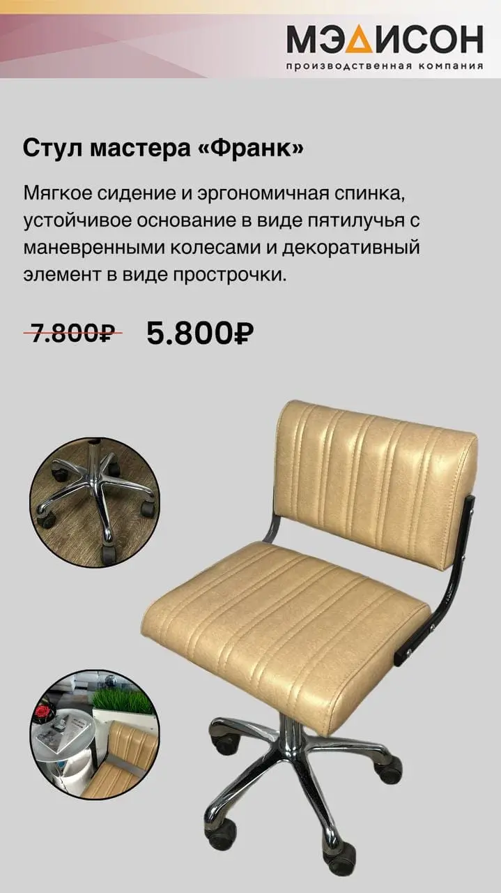 Бежевый стул мастера «Франк» с пятилучьем на колёсах