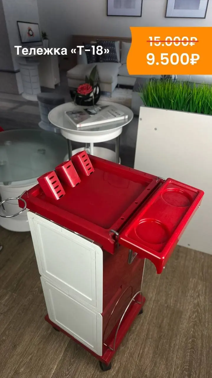 Парикмахерская тележка «Т-21» с выдвижными ящиками и отверстиями для кистей и чаш
