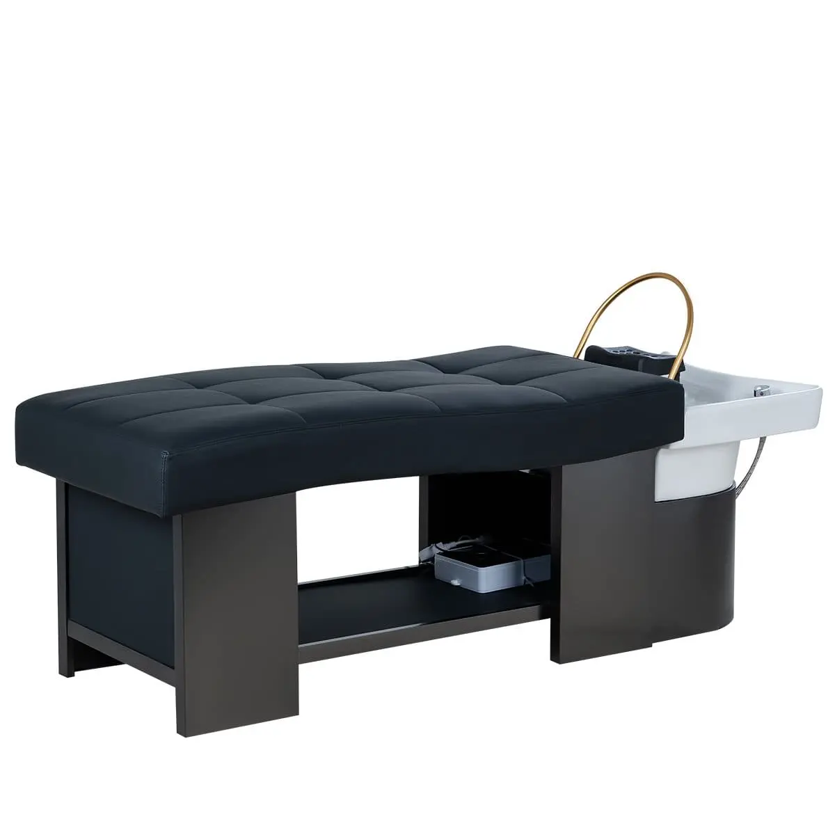 МД-616 — спа-кушетка для процедуры head spa, которая стремительно набирает популярность. Удобное изогнутое ложе мягко поддерживает тело, создавая ощущение невесомости, металлический каркас обеспечивает надёжность и устойчивость, сенсорная переносная панель позволяет мастеру легко регулировать функции, полка под кушеткой — для удобного размещения аксессуаров, а дуга для аква-массажа дарит роскошный водный релакс.