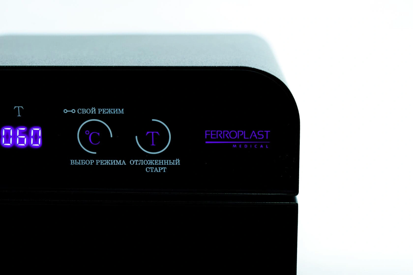 Стерилизатор "Ферропласт" при загруженной стерилизационной камере должен обеспечивать автоматическую поддержку температурных режимов в диапазоне от +85°С до +180°С и времени стерилизационной и дезинфекционной выдержки, а также пользовательского программируемого режима +50°С до +200°С, интервалом от 1 до 999 минут.