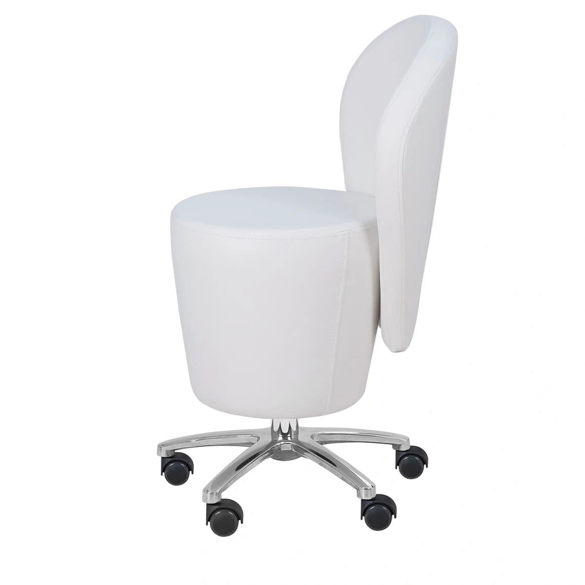 Стул мастера имеет устойчивое хромированное пятилучье с манёвренными колёсам, он без усилий перемещается и не занимает много пространства в салоне. Удобная регулировка высоты на боковой поверхности – можно поднимать/опускать стул, не вставая с него. Идеально подойдёт для косметологических и спа-салонов.