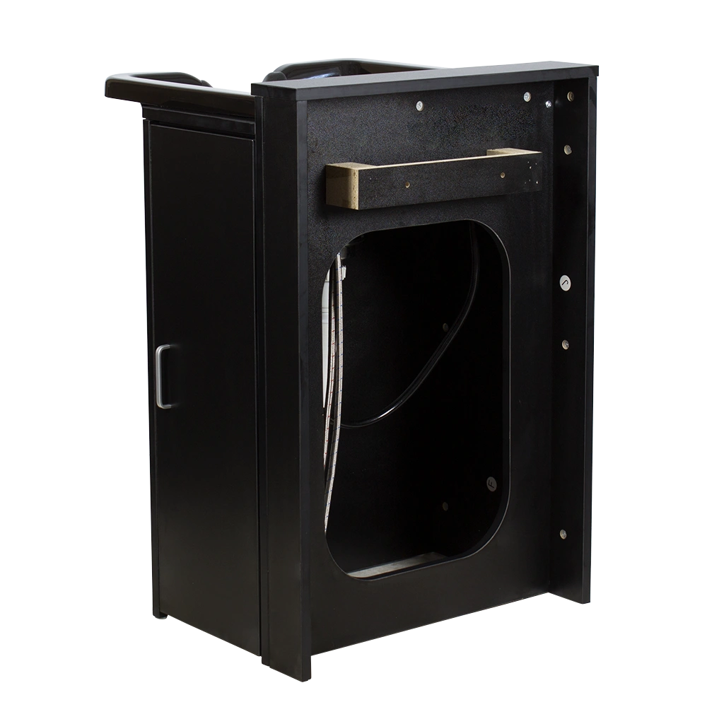 В каталоге интернет-магазина Мэдисон пополнение товаров! Покупателям представлена новая модель парикмахерской мойки без кресла – МД-212. В ее комплектацию входит средняя черная раковина из ударопрочного пластика, корпус с дверкой, сантехнические приборы. Материал корпуса: прочная ЛДСП черного цвета с текстурой под дерево. Боковая дверка позволяет беспрепятственно выполнять обслуживание и ремонт инженерных коммуникаций. Подключение к инженерным сетям осуществляется сзади, в средней части корпуса.